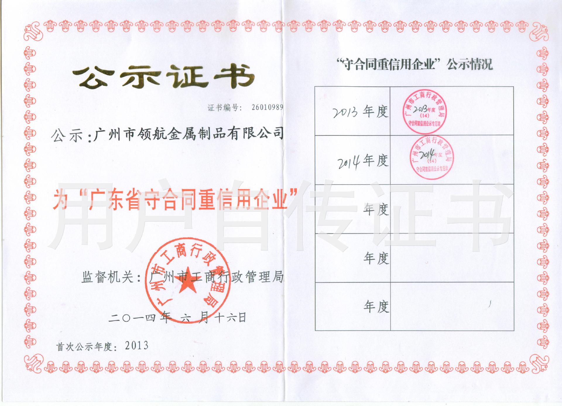 祝賀廣州領(lǐng)航重型貨架取得“廣東省守合同重信用企業(yè)”稱號(hào)